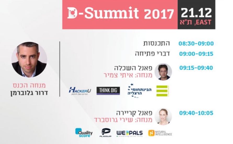 Some end of the year news: My final keynote address in 2017 will be on Thursday, December 21, in my city of Tel Aviv, Israel, at D-Summit, the annual conference of the Israeli Digital Association. The topic will be “Breaking Through the Digital Wall.” The talk will be in English.